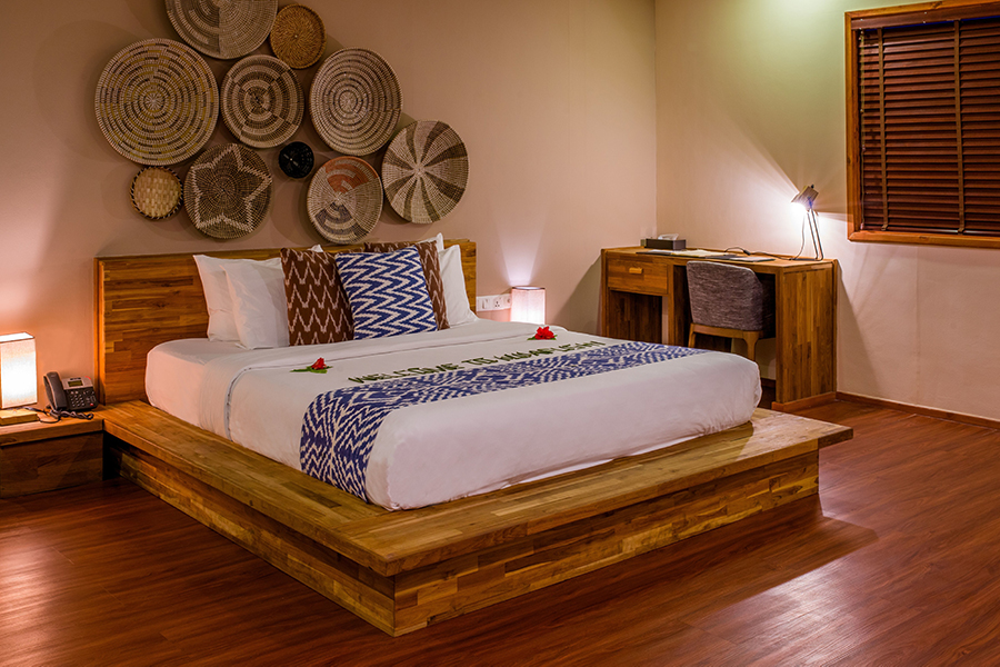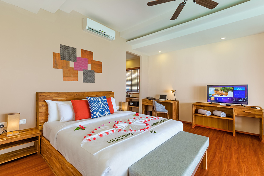 房型介绍:海滩别墅设有一间带休息区的宽敞卧室以及一间带室外花洒淋浴和浴缸的浴室。别墅坐落在郁郁葱葱的植被中,距离温暖的印度洋仅几步之遥,距离度假村的主要区域仅数分钟步行路程,所有海滩别墅都建有私人露台,通向原始而僻静的海滨。每栋别墅都完美地将岛屿魅力与现代便利设施完美结合。为了方便家庭入住,度假村提供2间相互连通的海滩别墅。