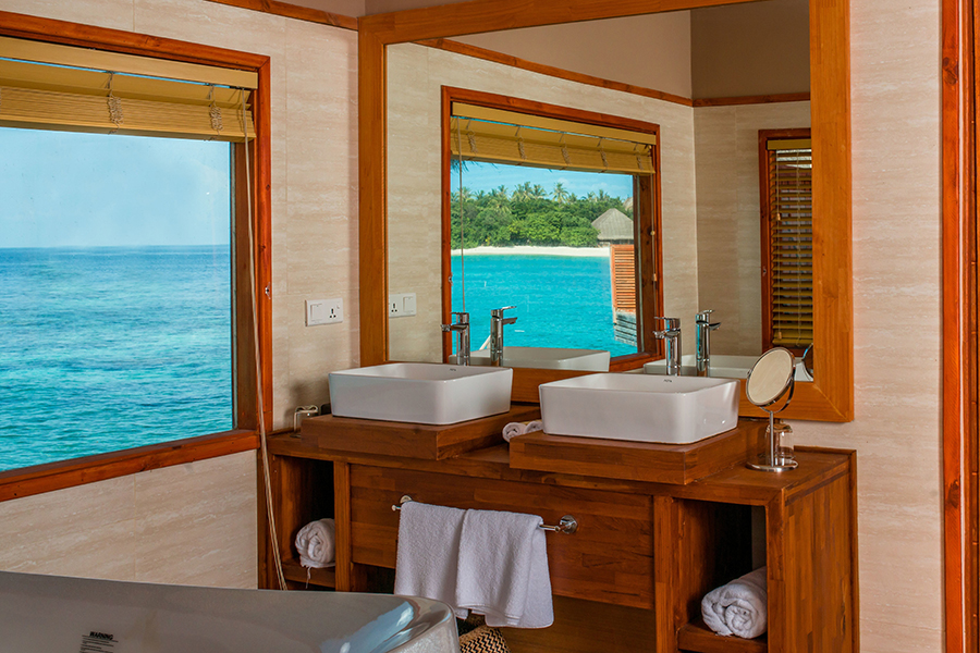 房型介绍:这间田园诗般的套房位于绿松石泻湖的正上方。直接从甲板上滑入下方蔚蓝的海水中,或在私人小型游泳池中畅游。珍惜水上避难所的私密性,享受壮丽的景色和现代豪华的设计。设有连通别墅,设有独立的起居和餐厅,供全家人享用。