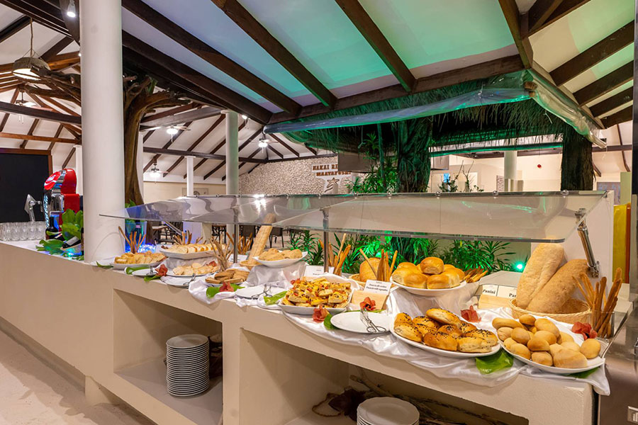 酒吧介绍:海滩酒吧位于餐厅旁边。您可以享用清凉饮品、美式咖啡或热茶,以及全包式配方中提供的甜味或咸味小吃,同时欣赏大海的美景