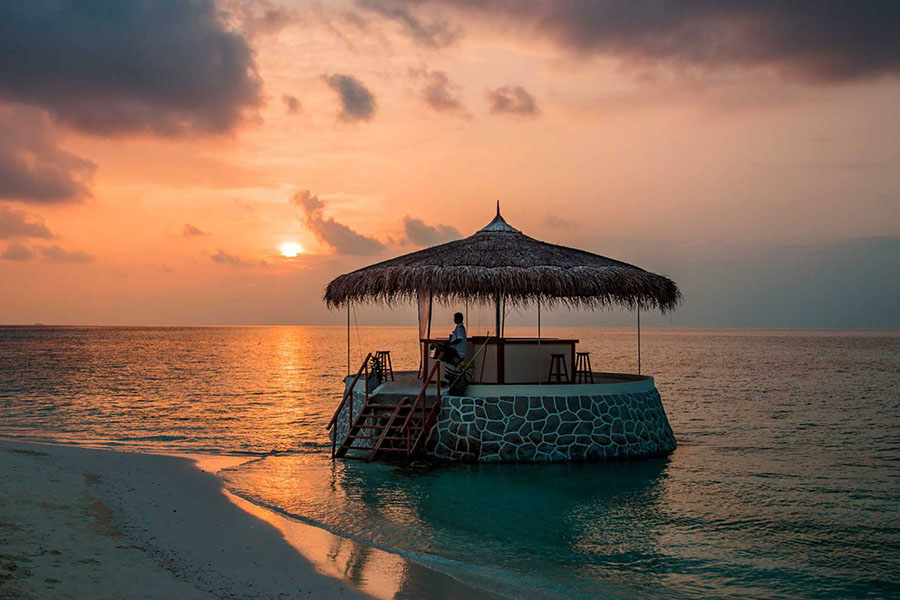 酒吧介绍:Maayfushi's Ocean Bar酒吧是在马尔代夫温暖的早晨享用清凉饮品的理想场所,并享受太阳在夜幕降临前隐藏在地平线后面的五彩缤纷的奇观。