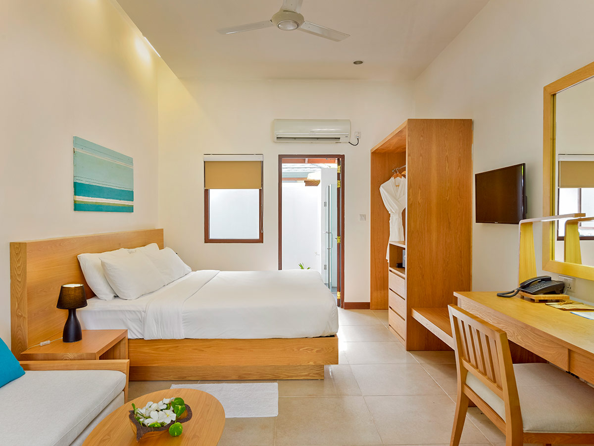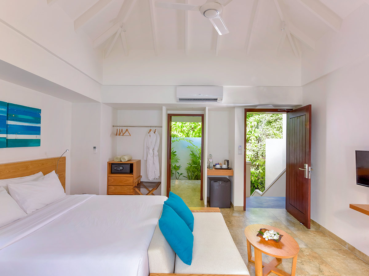 房型介绍:我们的花园客房共有 7 间,配备马尔代夫高级海滩平房的所有设施。绿树环绕的私人露台充分展现了岛中部的精神风情。