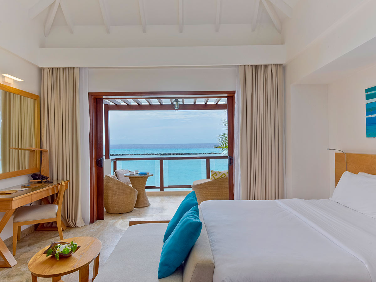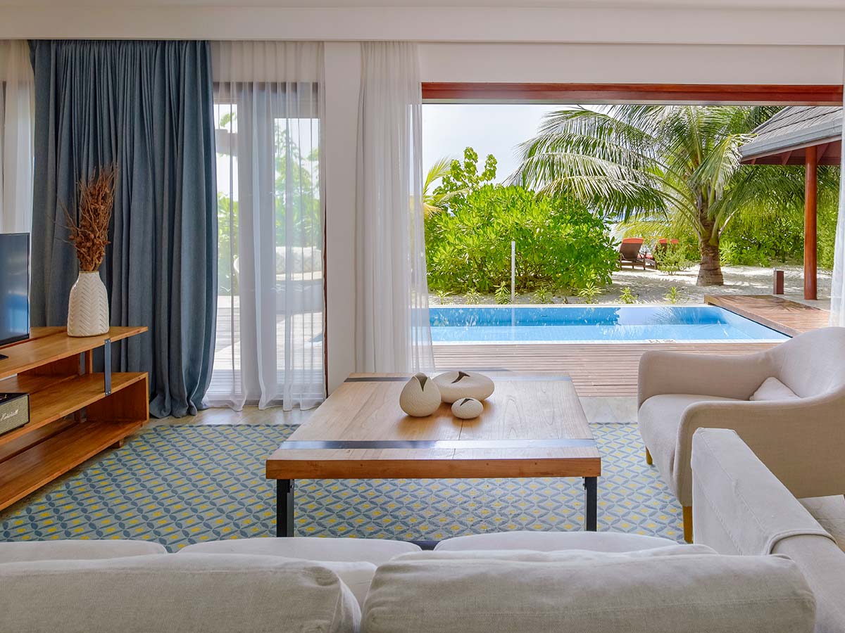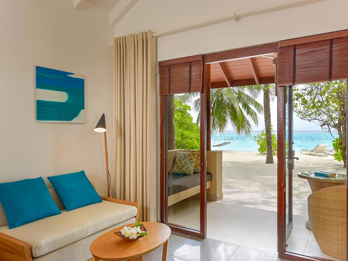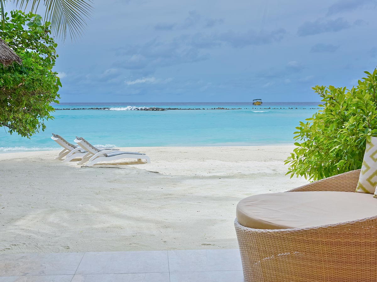 房型介绍:我们在马尔代夫的高级海滩别墅配有超大休息室,露台旁是一片私人海滩,专为完美的赤脚体验而设计。