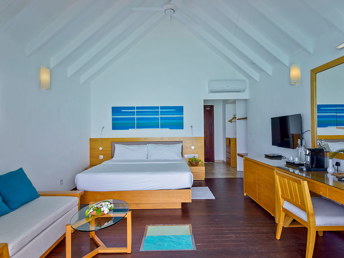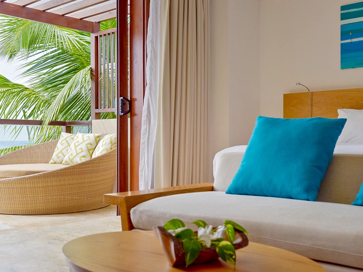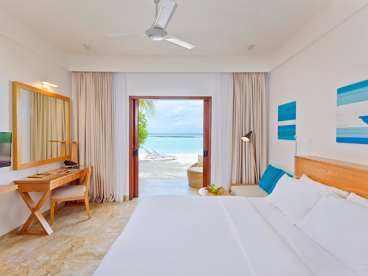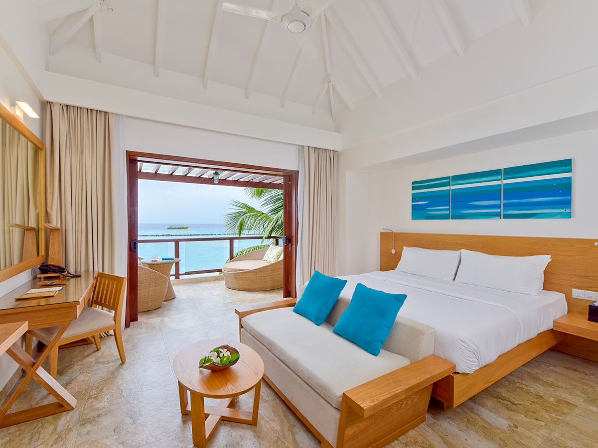 房型介绍:我们在马尔代夫的高级海滩别墅配有超大休息室,露台旁是一片私人海滩,专为完美的赤脚体验而设计。