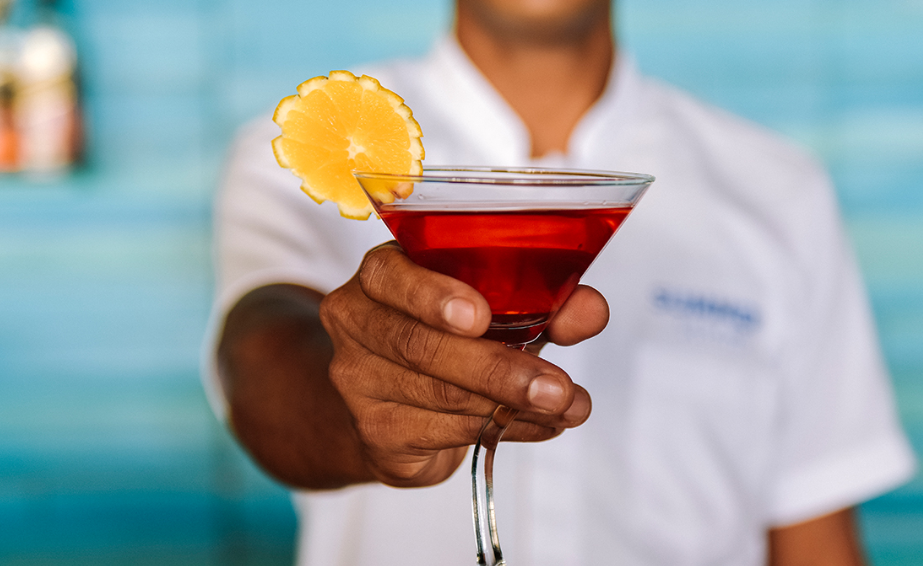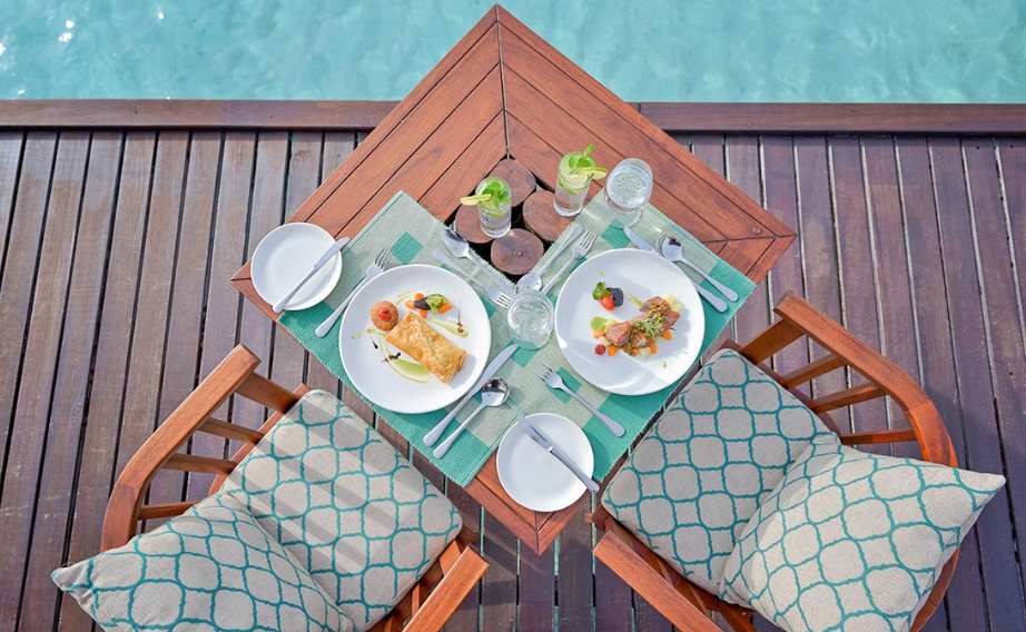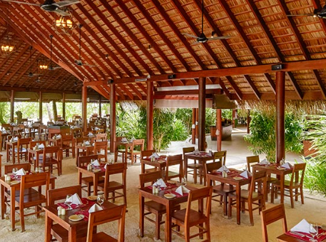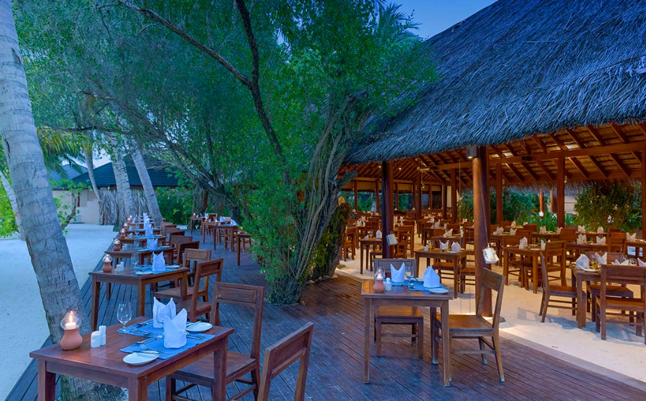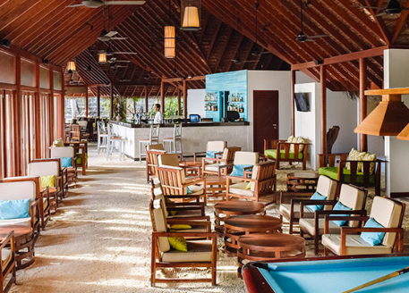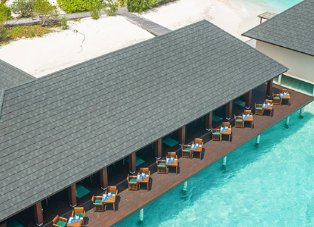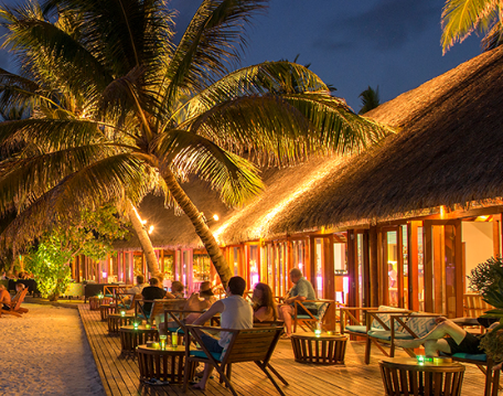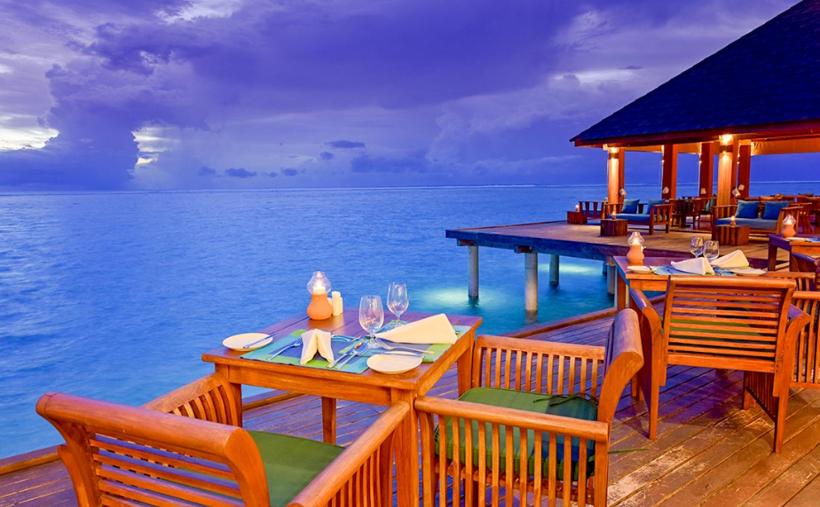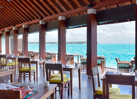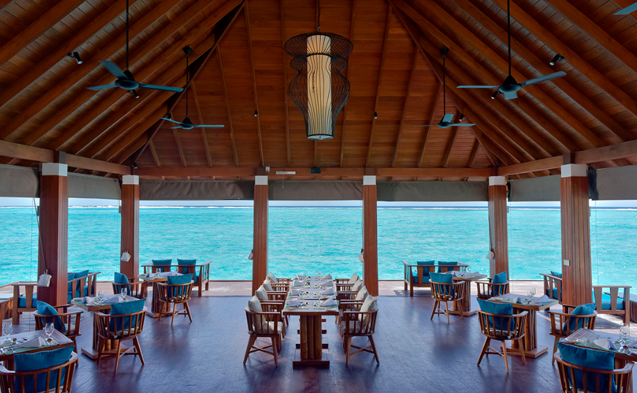餐厅介绍:温馨的豪华水上酒吧和餐厅,是白天与黑夜交融时,品尝鸡尾酒放松身心的理想场所。提供所有包容性的饮料可供住在水上别墅,高级海滩别墅和夏日别墅的客人。单点美食,设有室内和室外座位。