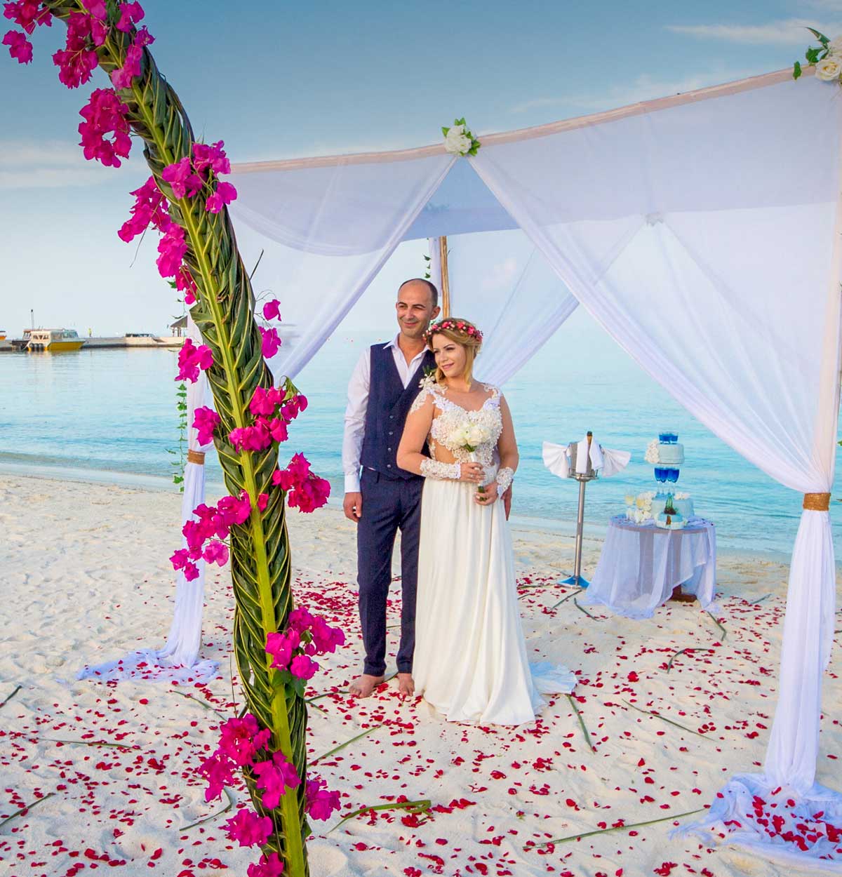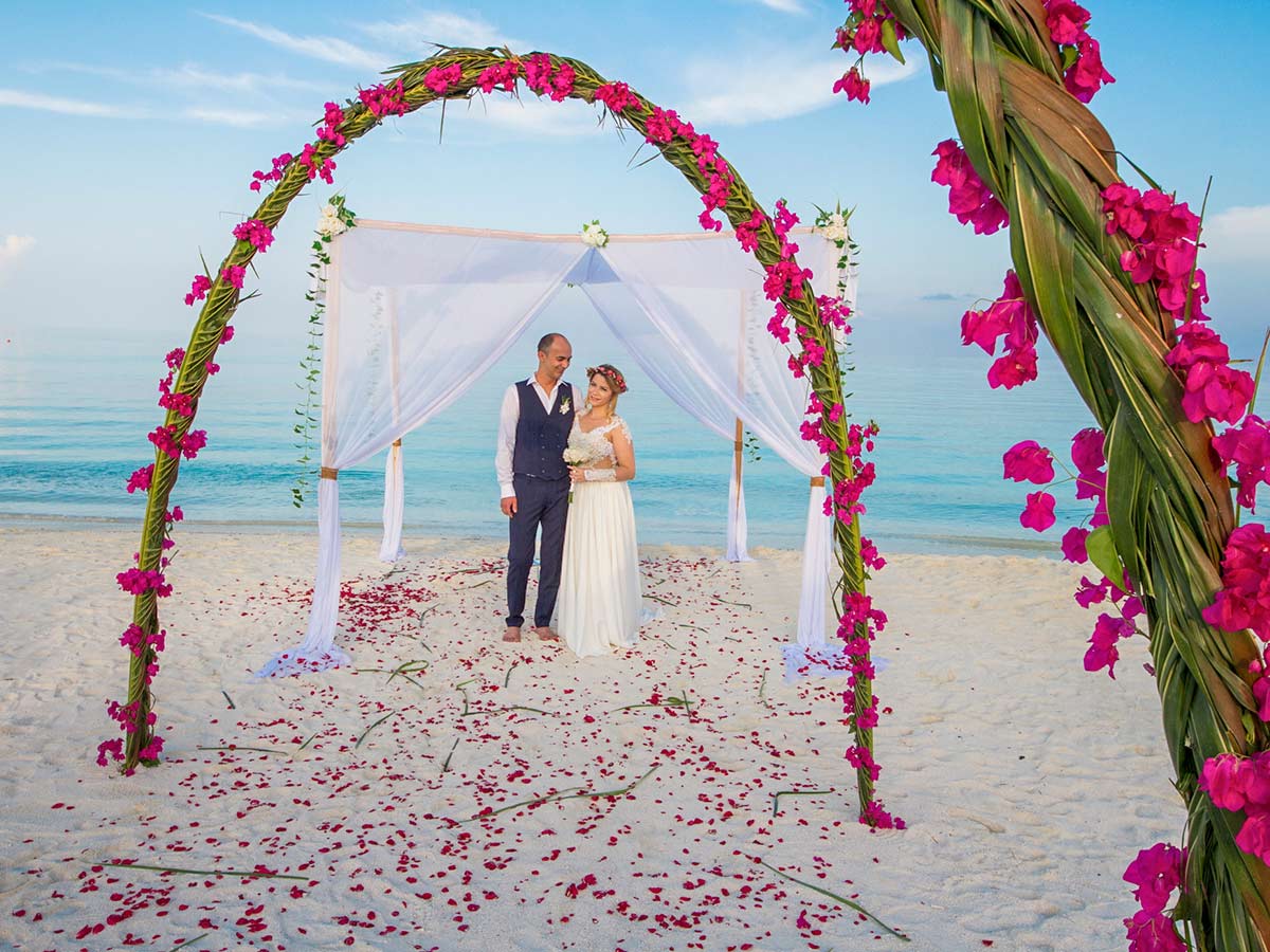 在夏日的天空下,在无尽的大海见证下,宣誓永恒的爱。一遍又一遍地说我愿意,与海浪的歌声齐声。