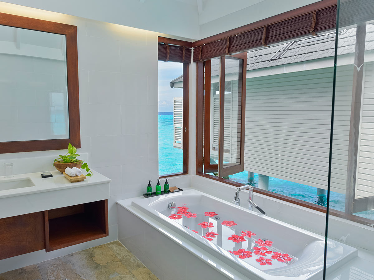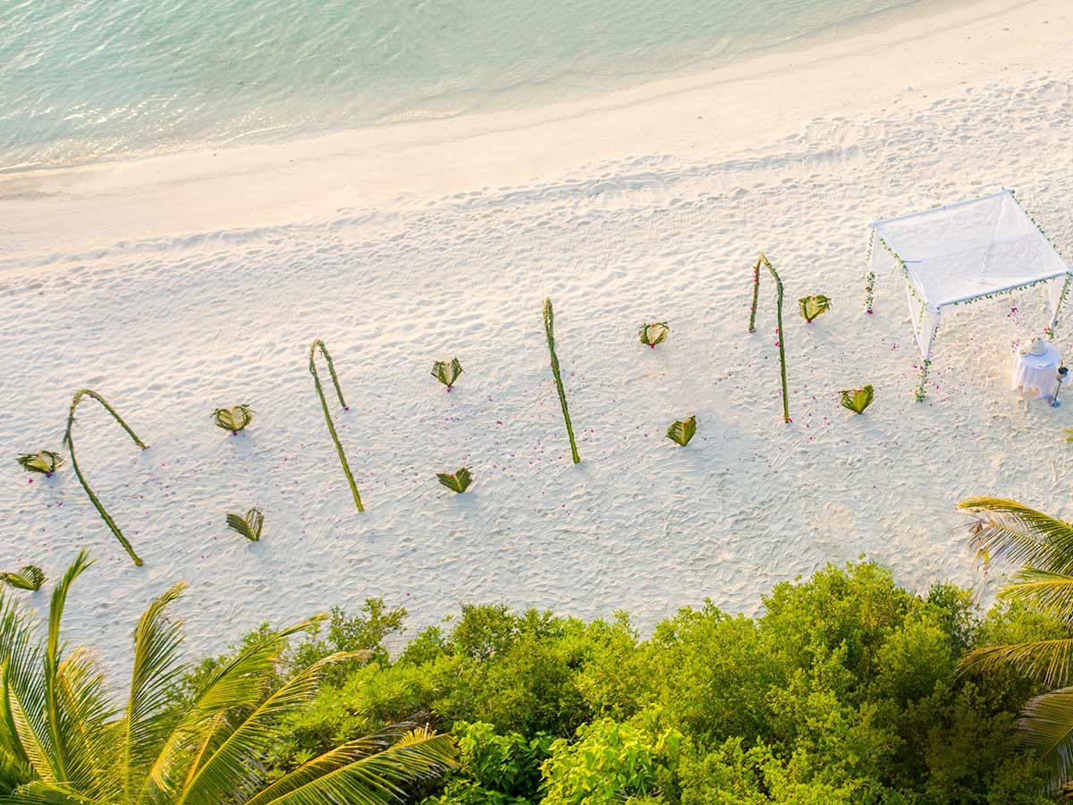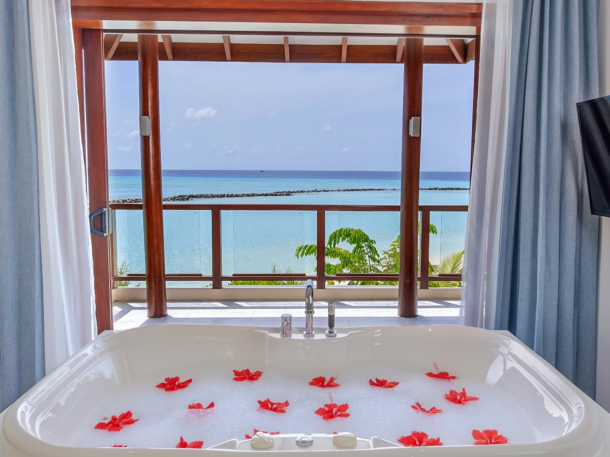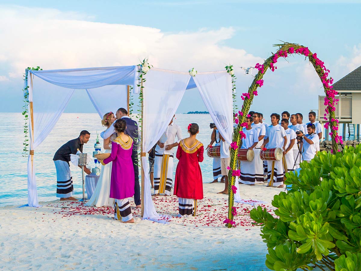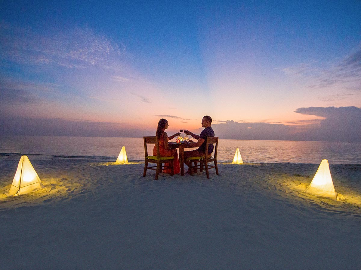 在夏日,你们两个人可以享受一些热带时光,延长您的婚礼庆祝活动,当您抵达这个令人难忘的马尔代夫蜜月度假村时,免费的葡萄酒和水果欢迎您。