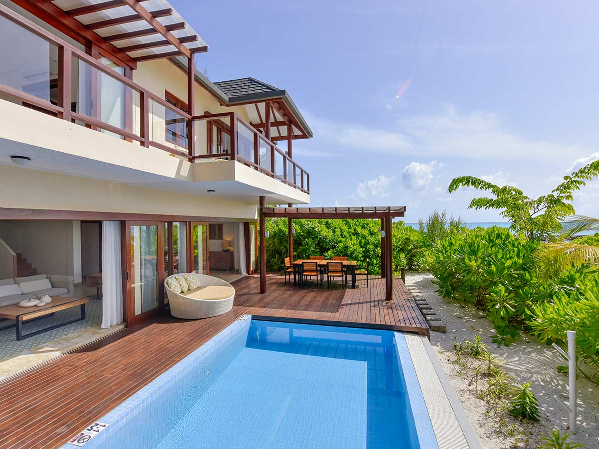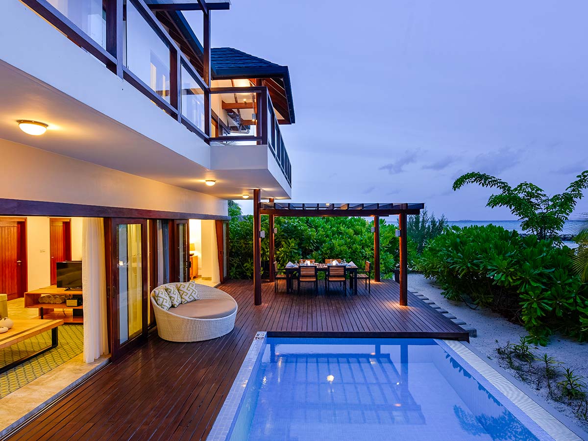 房型介绍:马尔代夫夏日别墅平房配备天然木制家具、可望向大海的阳台和自己的游泳池,非常适合希望在合适的氛围中展开和联系的小团体。