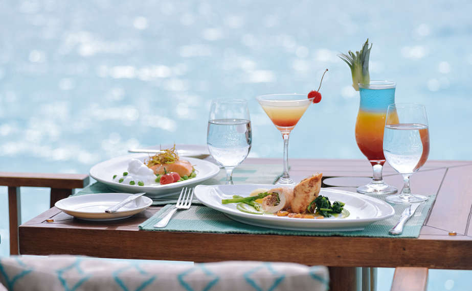 餐厅介绍:为高级客房、高级视野客房、高级海滩客房和花园客房的客人提供国际自助早餐、午餐和晚餐,并提供14天轮换菜单。酒窖空间被几百瓶罕见的葡萄酒和香槟环绕,周围是无边海景,适合举办亲密晚餐。每道菜都佐以品酒师精心挑选的佳酿,每一口食物和美酒都会给您带来惊喜。