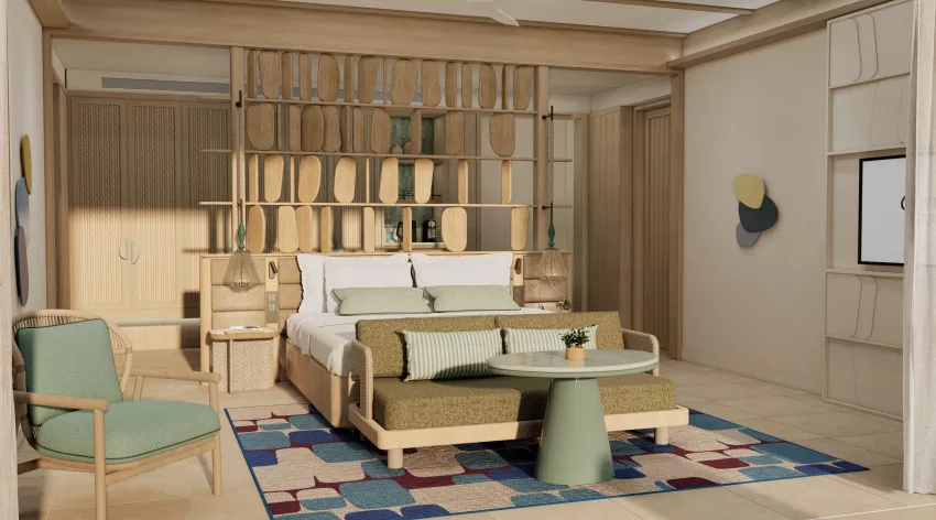 房型介绍:有7间大床房和7间双床房。单卧室日落海滩泳池别墅提供宁静的休憩之所,可欣赏碧绿海水的壮丽景色。这栋别墅面积为 88 平方米,设有私人泳池和私人海滩通道,以及带浴缸和淋浴的宽敞浴室,是您在一天的岛屿探险后尽情放松的理想之选。舒适的特大床或双人床最多可容纳 3 名成人或 2 名成人和 1 名儿童。
