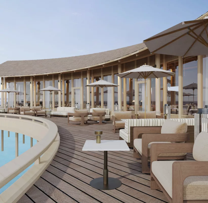 餐厅介绍:Sunset Social 是一个充满活力的水上度假胜地,精致的马尔代夫环礁美食和异国情调的热带鸡尾酒与全景海景和夕阳的温暖色调相得益彰,而独特的双体船网式座椅则为观察下方迷人的海洋生物提供了无与伦比的有利位置。