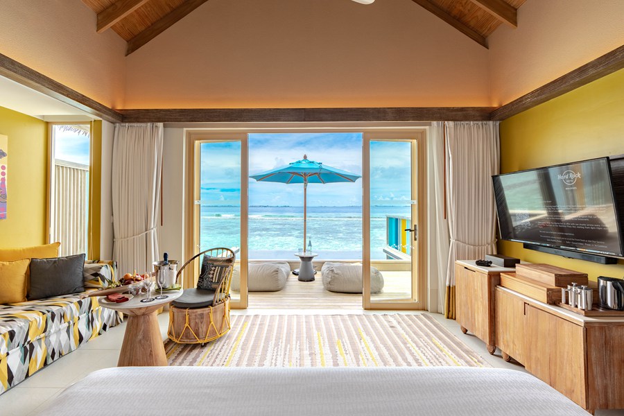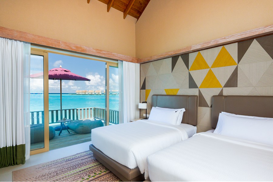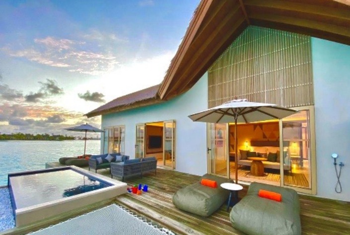 房型介绍:白金水上别墅提供丰富的下榻体验,令人一见倾心。在私人露台的日光躺椅上欣赏美景。提供躺椅与网床,乐享悠闲的户外时光。直通青绿色的泄湖,景致优美。