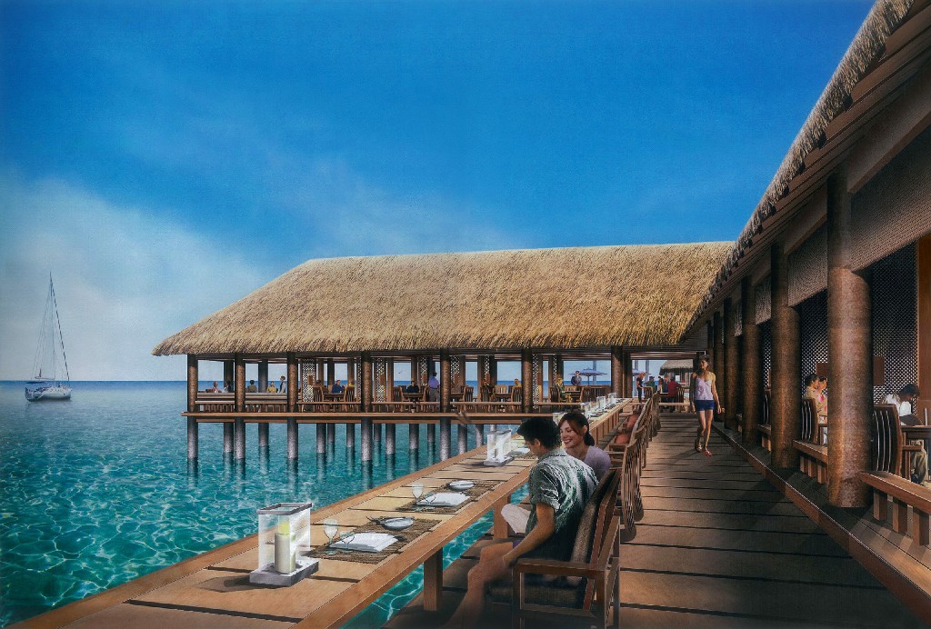 餐厅介绍:我们的招牌餐厅lsland Oasis坐落于两座岛屿之间的水上,带来一场超现实的用餐体验,享受来自充满活力和多样性的地中海海岸的美味。从此餐厅右侧下水可到最佳浮潜点。