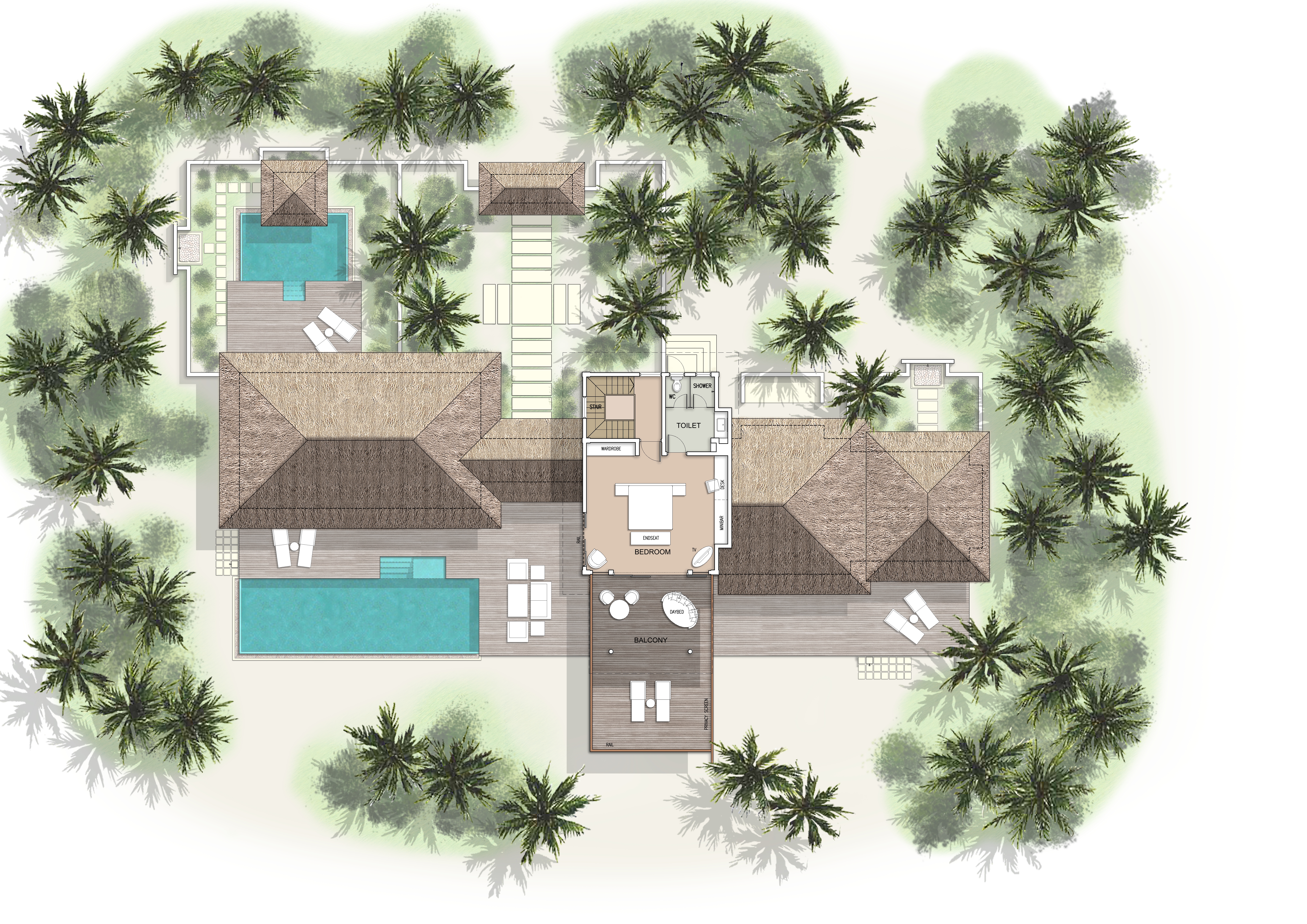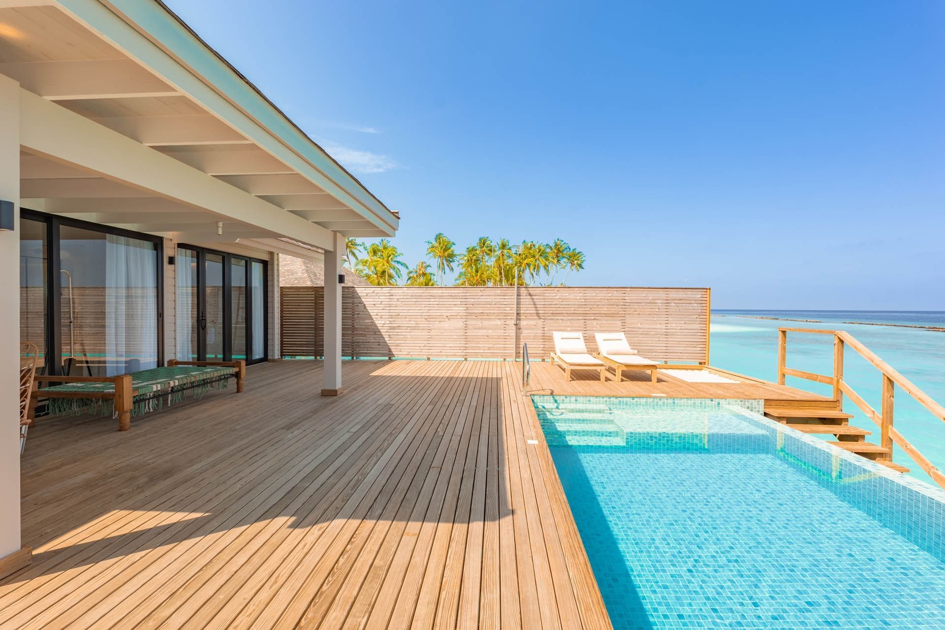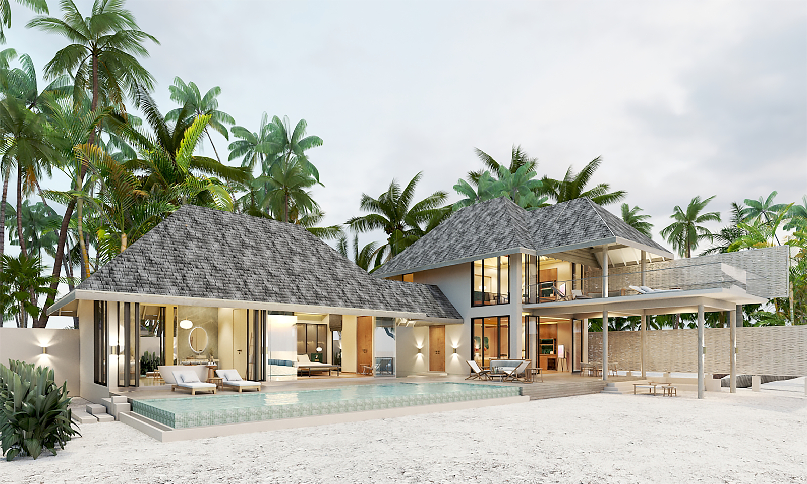 房型介绍:位于主岛,风格尽情放松,直接通往洁净的海滩,拥有私人泳池。宽敞的住宿空间配备现代设施,享有壮丽的海洋景观,是家庭假期或团体度假的理想之选,创造难忘的回忆。