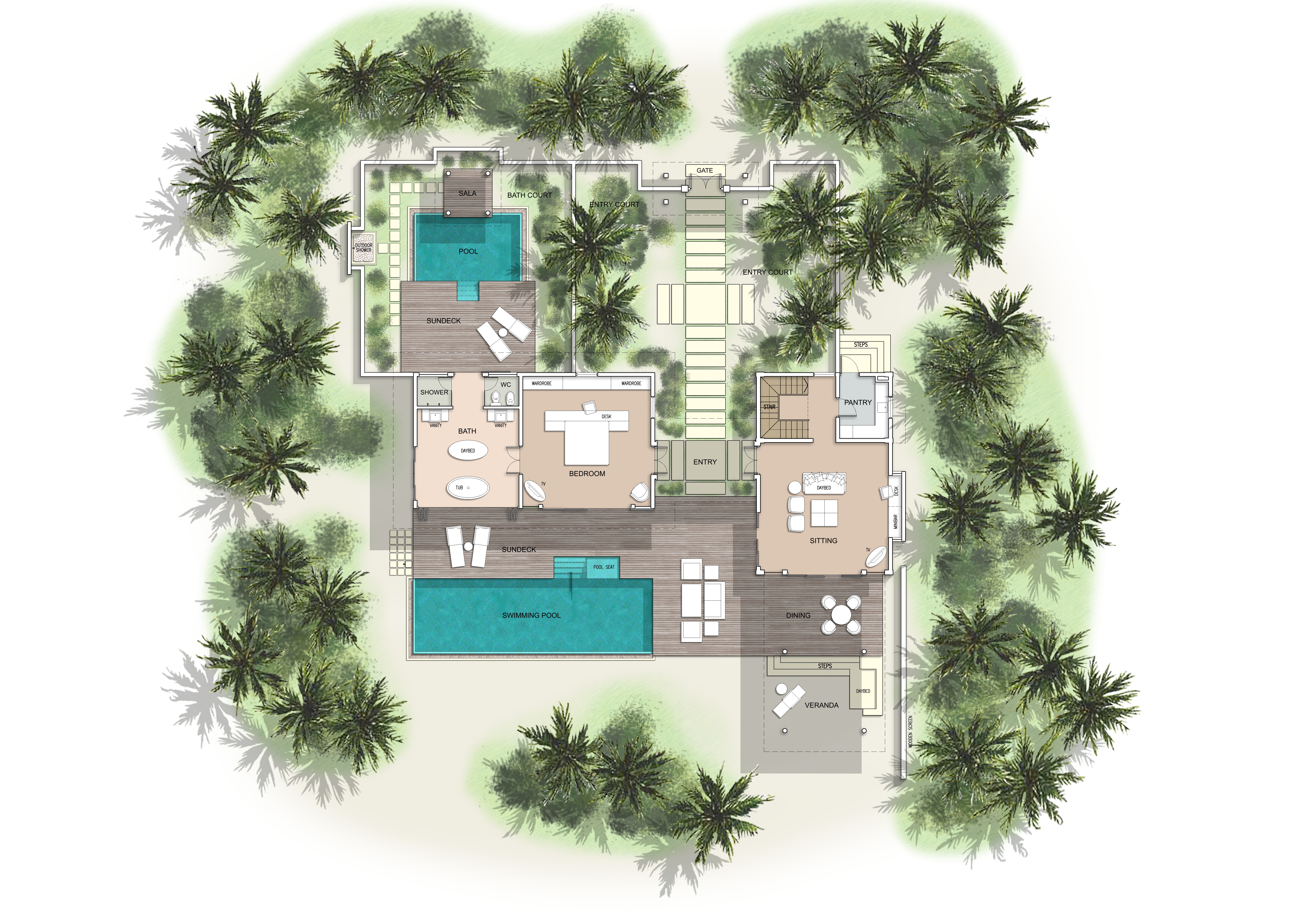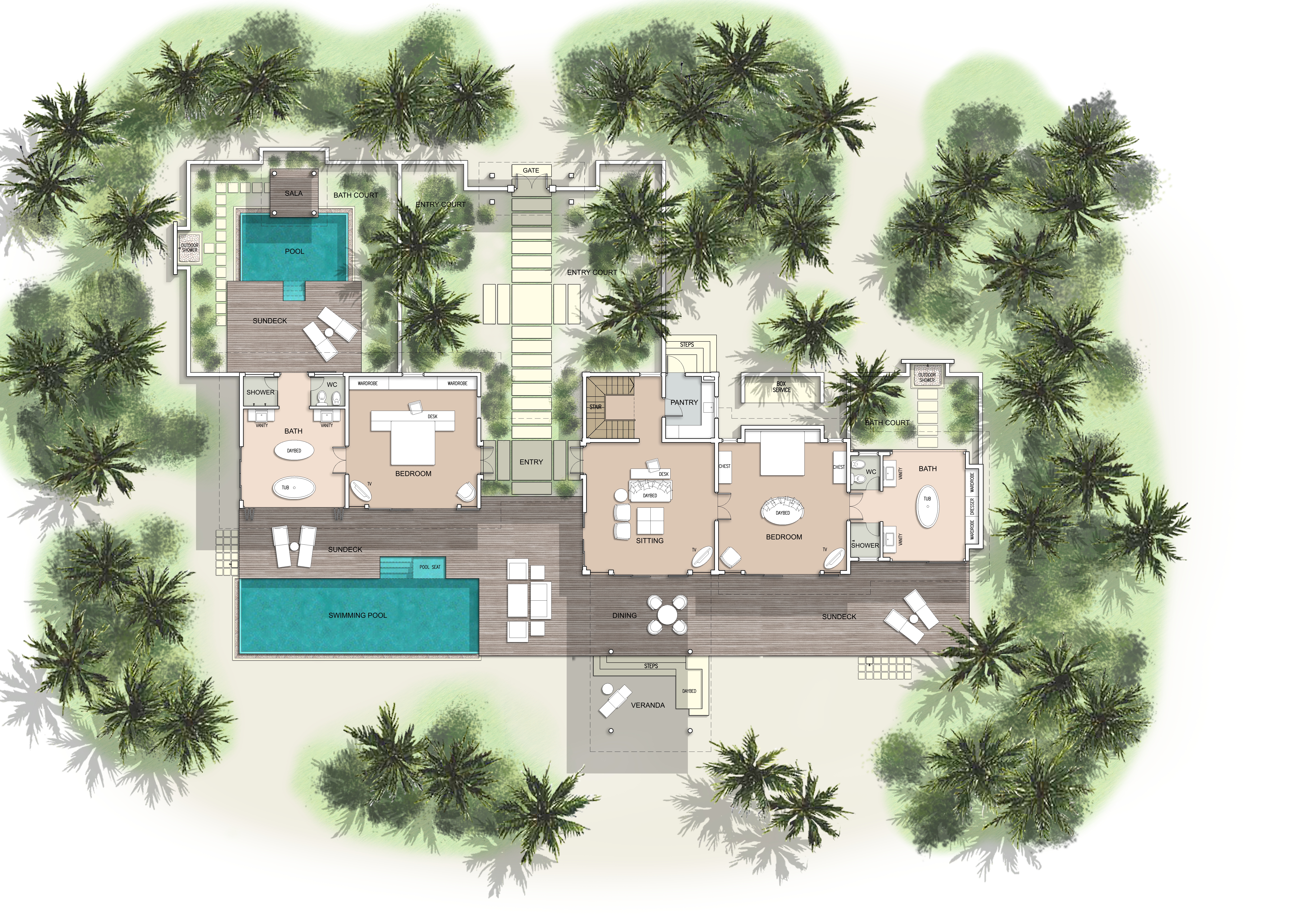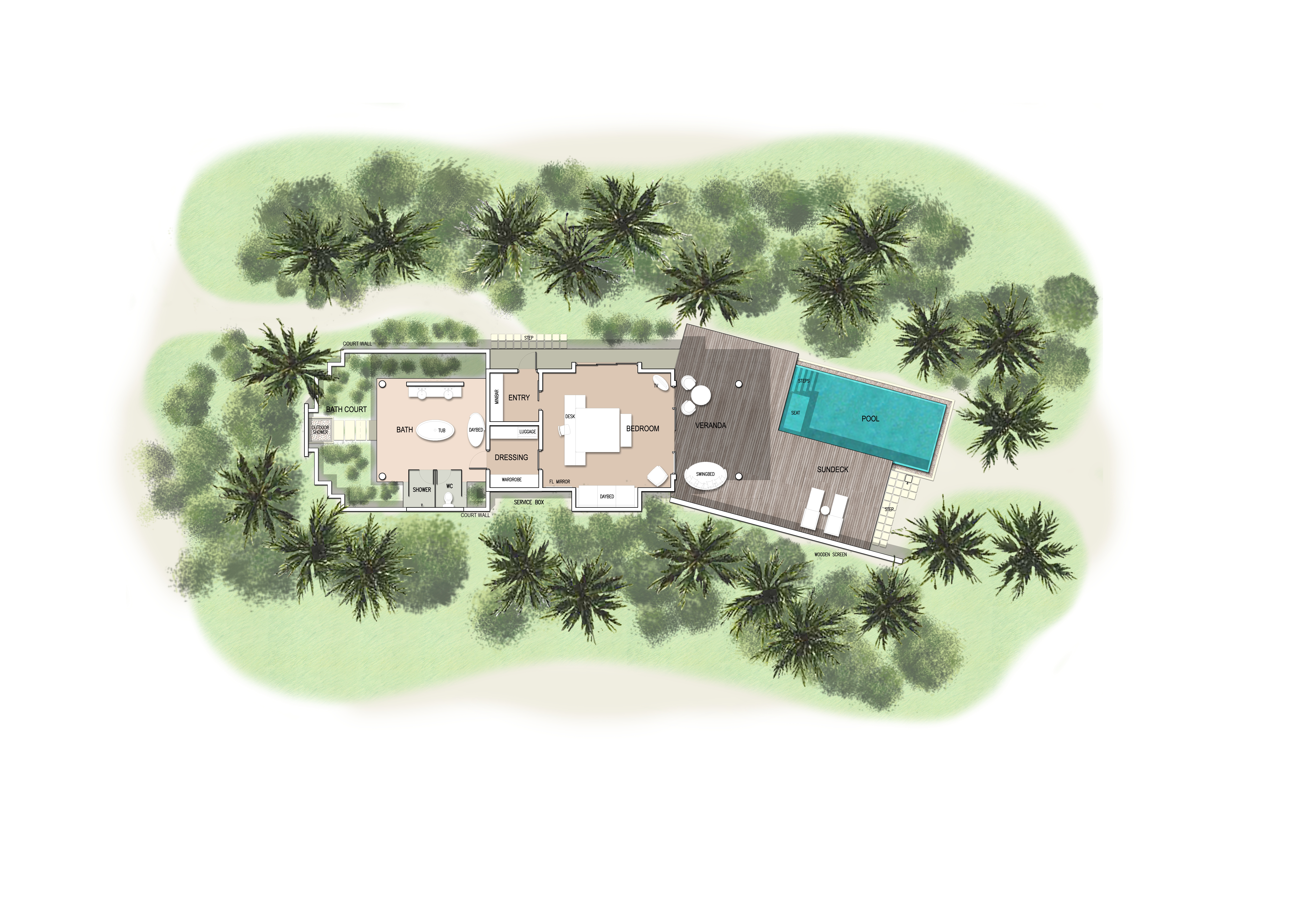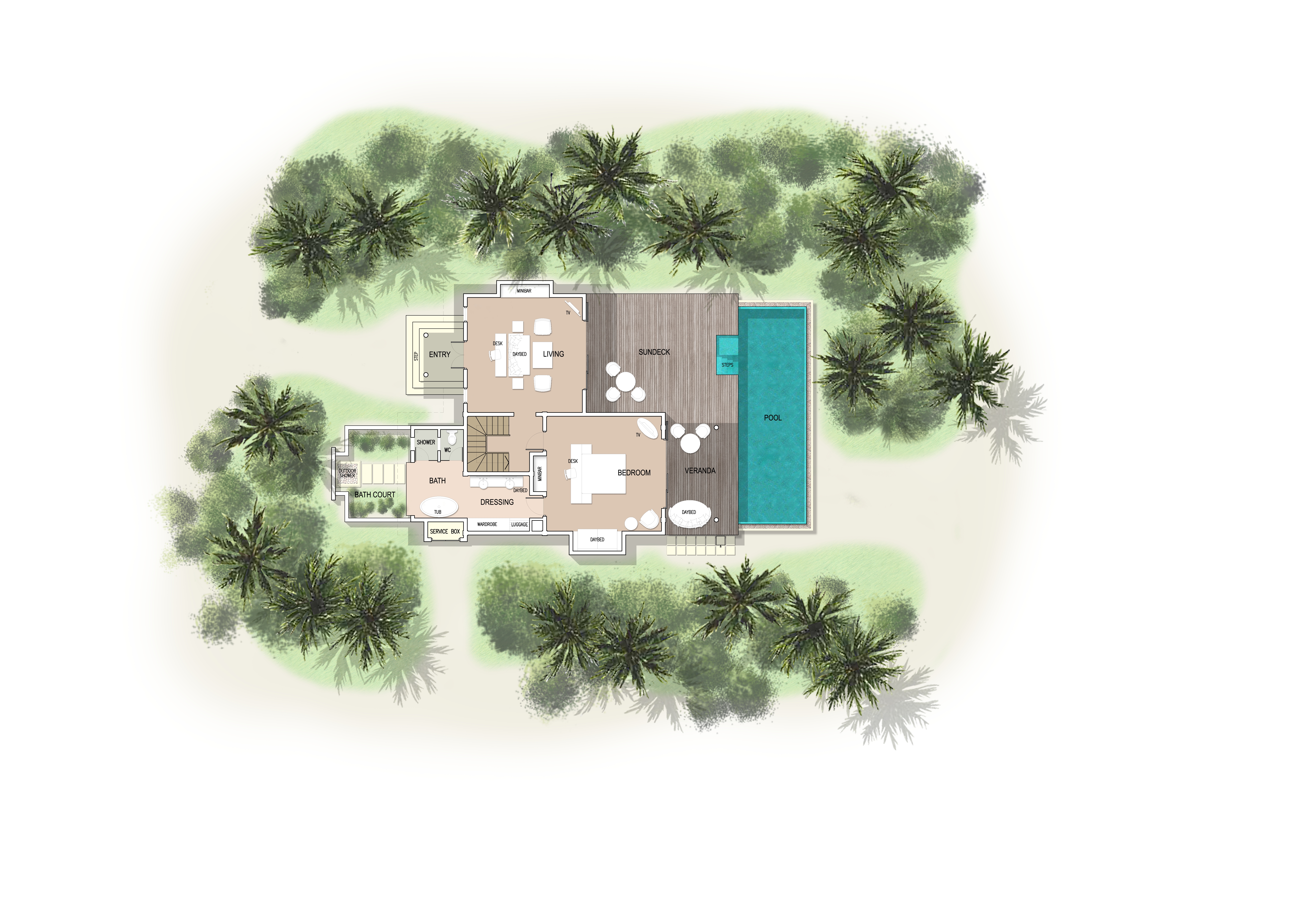 房型介绍:位于主岛,风格尽情放松,直接通往洁净的海滩,拥有私人泳池。宽敞的住宿空间配备现代设施,享有壮丽的海洋景观,是家庭假期或团体度假的理想之选,创造难忘的回忆。