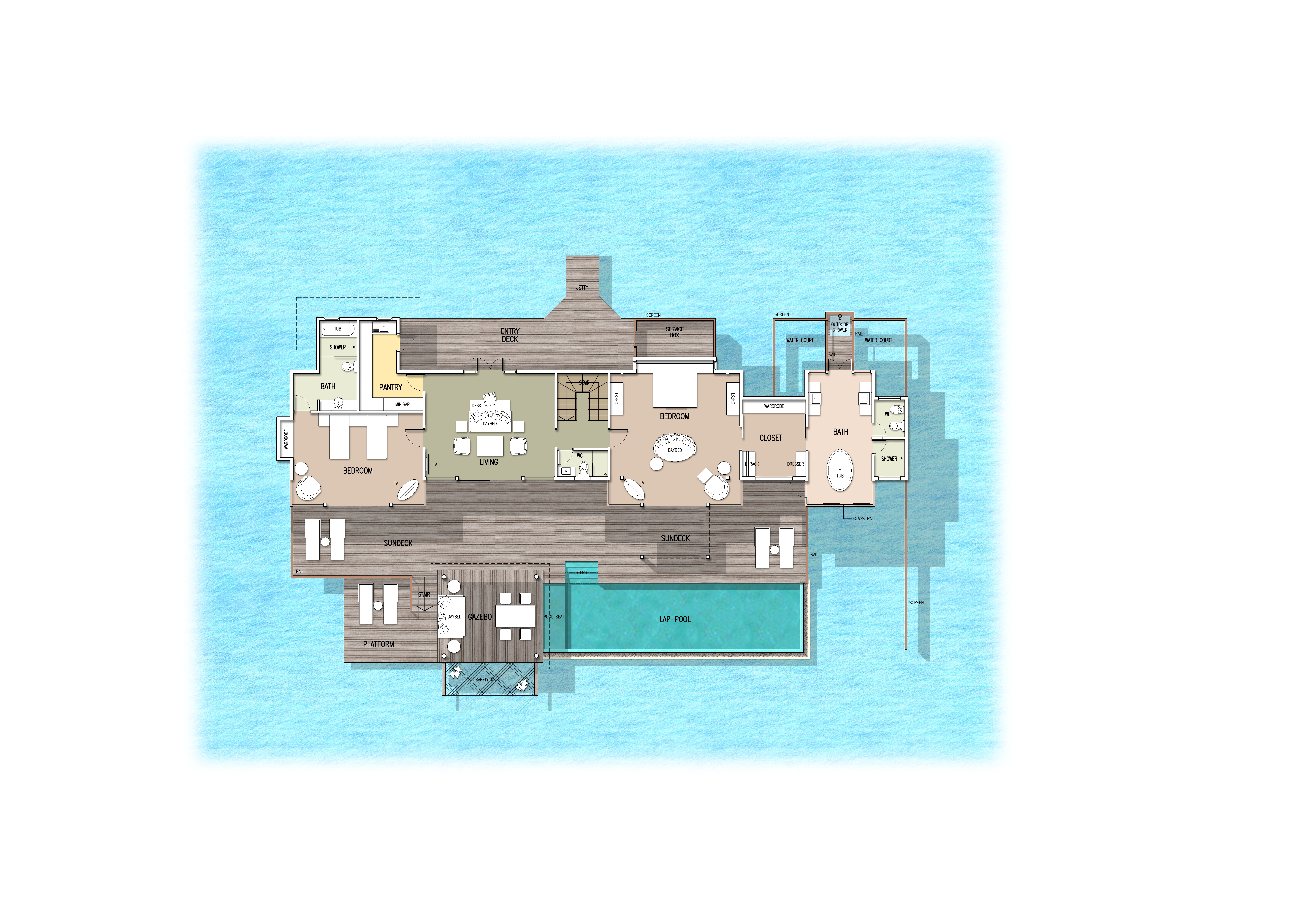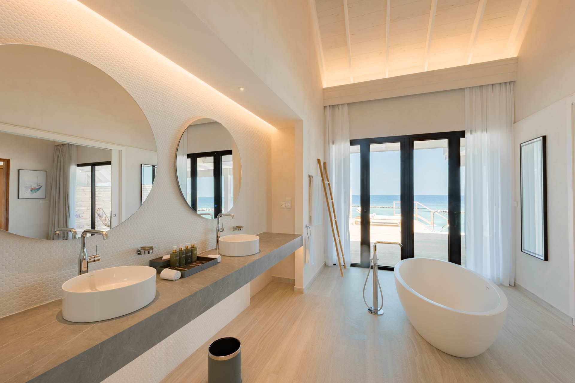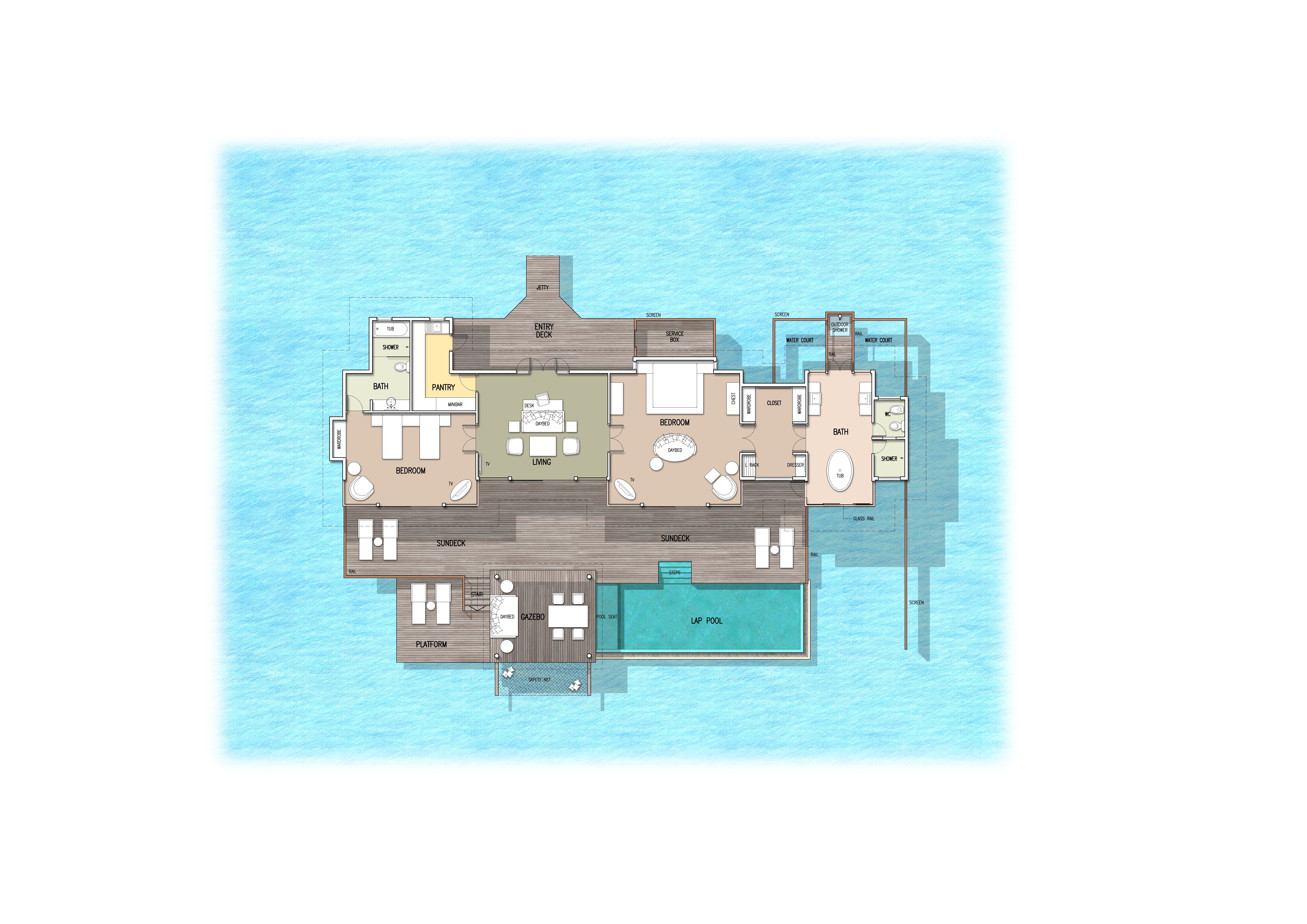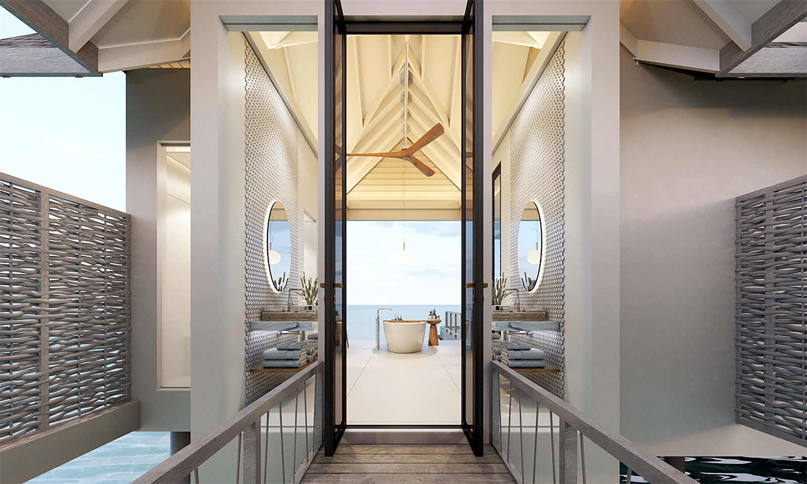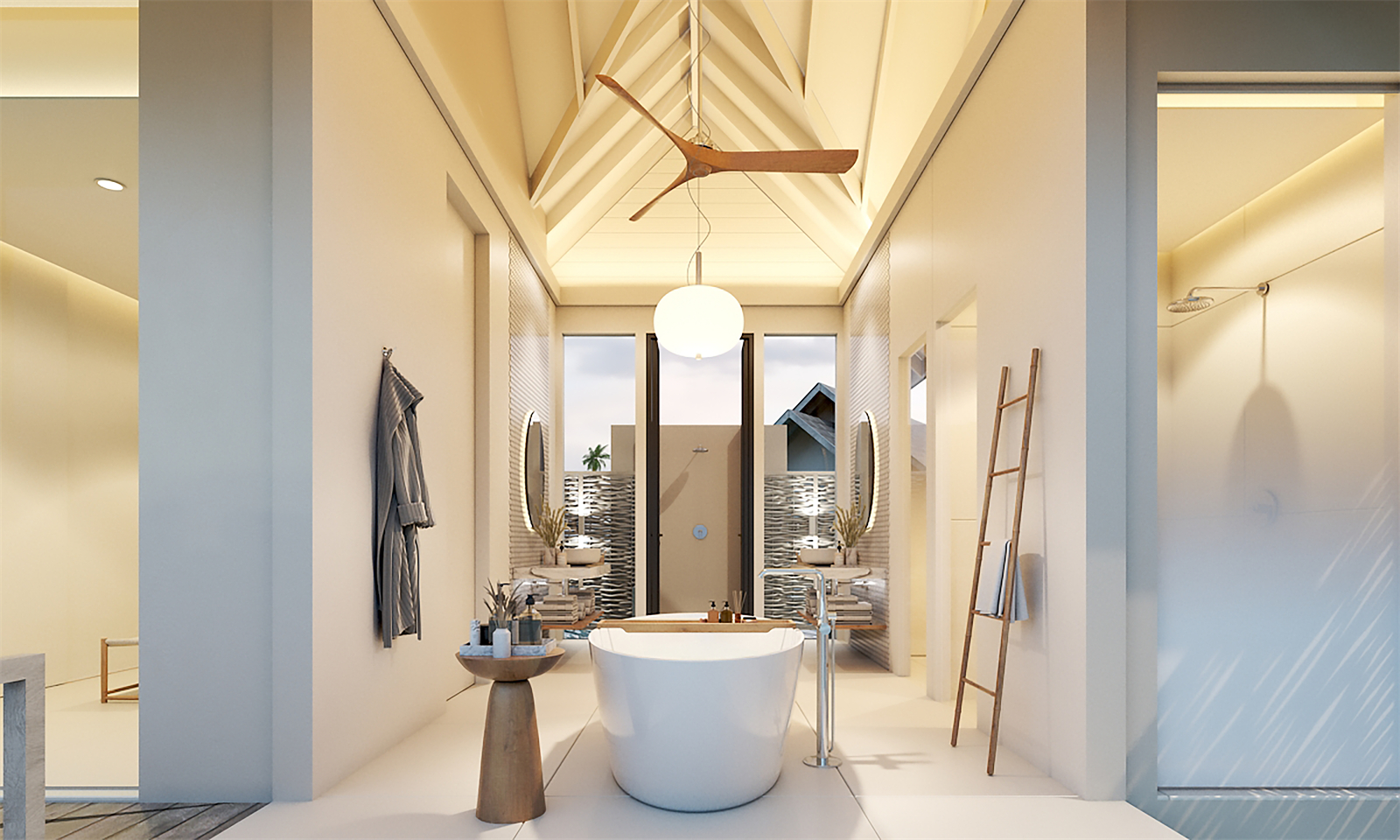 房型介绍:位于主岛,坐落于美丽的蓝色海水之上,这些梦幻般的隐秘居所拥有舒缓的白色内饰。配有豪华的特大床、海景浴室、以及带私人泳池、日光躺椅和直接通往珊瑚丰富泻湖的露台,提供无与伦比的放松体验。