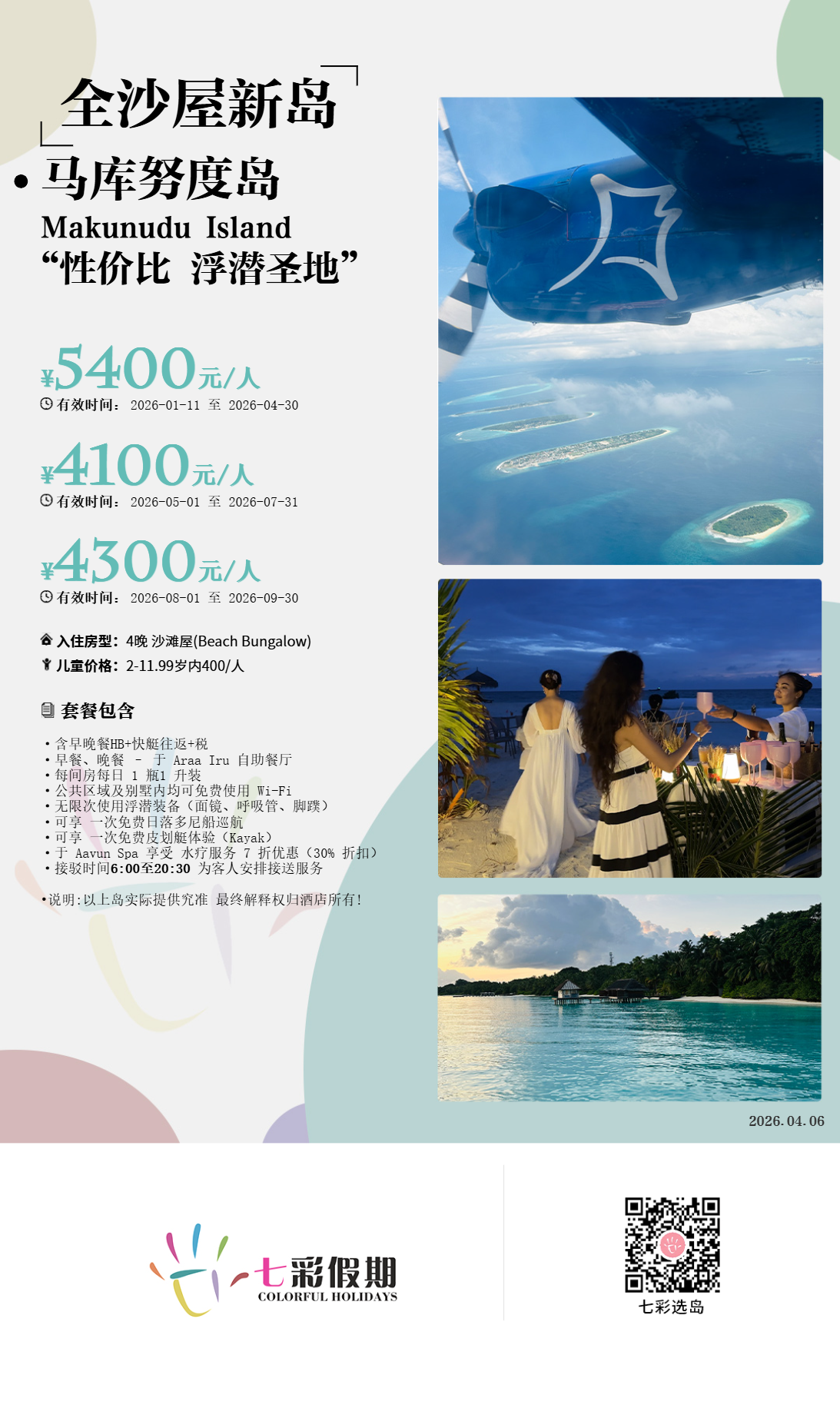 重新发现简单的奢华,时间的沙子缓缓流淌,大自然成为你的主人。马库努度岛Makunudu Island位于北马累环礁,距离维拉纳国际机场乘快艇约45分钟,将你带入一个独特的马尔代夫度假胜地的温暖怀抱。闪闪发光的海滩让位于碧绿泻湖清澈的海水,与无尽的海景相融。宁静悄然渗入你的灵魂,真诚的款待如朋友般欢迎你。一个罕见的避风港,美丽未被触碰,即使是环游世界的人,也在心中占有特殊位置。脱鞋,进入岛屿时间......