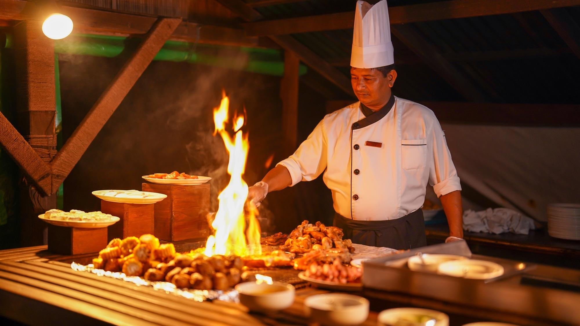 在丰盛的肉类、鱼类和热带水果自助餐、桌上套餐,以及每周一次的盛大马尔代夫自助晚餐中,享受热辣的烧烤和美味的本地香料,尽情庆祝国际美食。无论白天还是夜晚,在沙洲享用清爽饮品和日落鸡尾酒,海风吹拂,与旅伴们交谈,解渴无忧。在那些特殊场合,在星空下、海滩、别墅或其他私密场所享用一顿个人手工制作的烛光晚餐,是真正值得品味的体验。