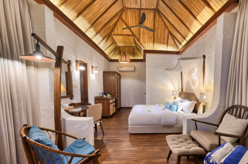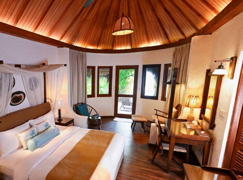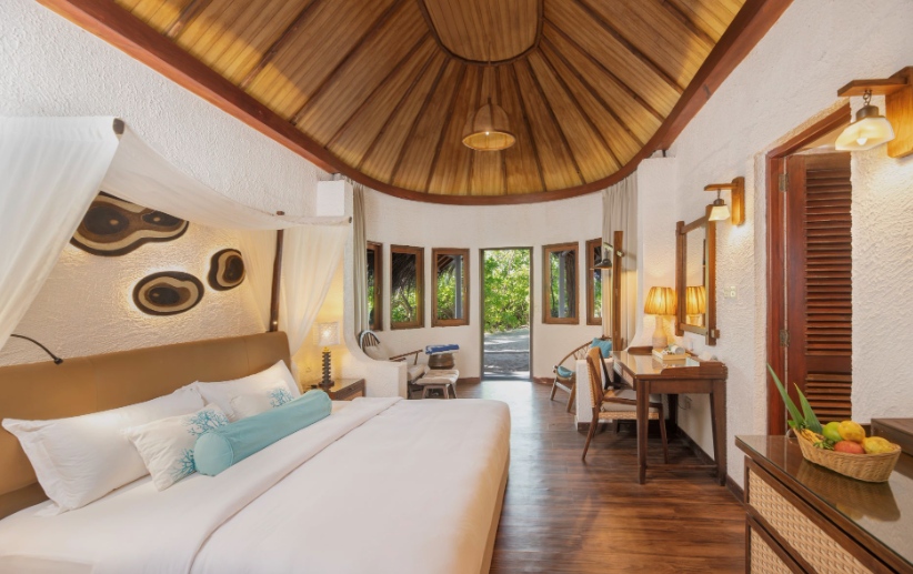 房型介绍:我们的20栋海滩平房分布在岛屿边缘, 晶莹剔透的泻湖,只需短暂散步即可到达。这些自然灵感的家具无缝连接你与平房外岛屿的美景。