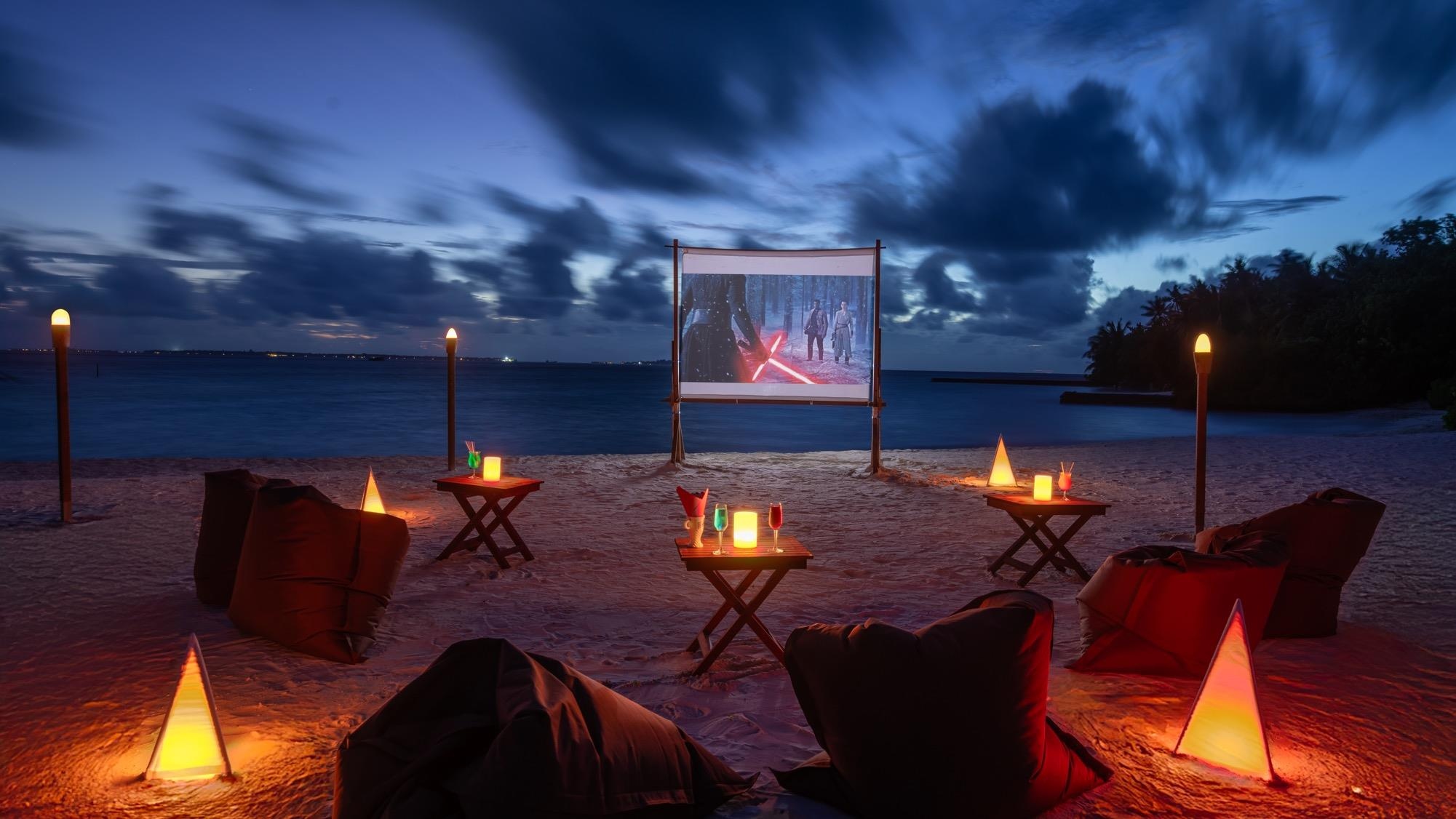 我们为电影之夜增添热带风情,包括爆米花和饮料,您可在星空下我们的海滩影院欣赏大片与经典影片。(私人星空电影可应要求安排)